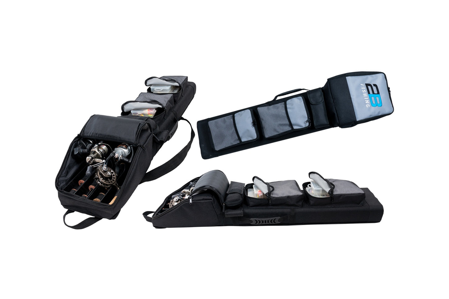 Premium gear bag designed to carry four 36” ice rod/reel combos. Rods ride in PVC tubes for extra security and prevent tangling. Front zippered compartments and mesh pockets keep gear organized.