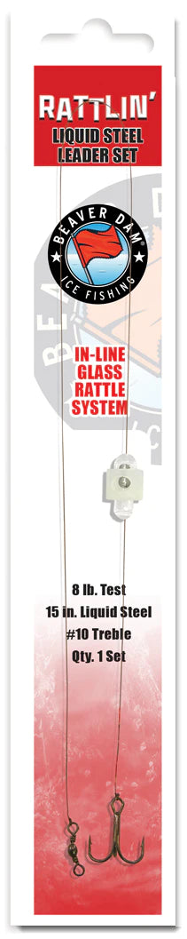 The Unparalelled benefits of using a flurocarbon leader under the ice have now been paired with a glass rattle chamber to add another bite producing dimension to your tip up leader system. Give your leader the extra boost it needs with glass rattle technology. (Rattle Pod Glows) 1 Pack. 15" Leader Length.