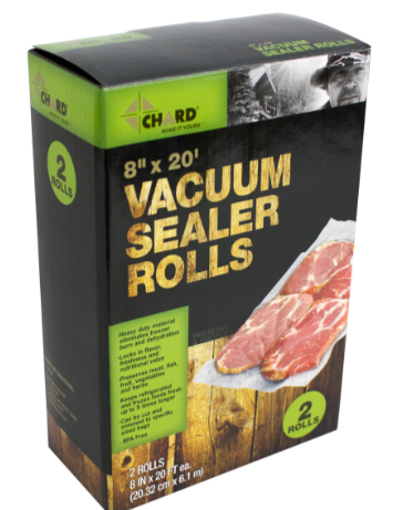 CHARD Vacuum Sealer Rolls are the perfect tool when it comes to preserving and packaging your favorite foods. Storing foods that are in season will save you time and money with delicious meals later. Whether you are sealing dehydrated jerky from your last hunting trip or preparing garden vegetables for long-term storage, CHARD Vacuum Sealer Rolls provide great results by drawing air out quickly and locking in flavor and nutrition. Prolong the life of your favorite foods and snacks by eliminating freezer burn and wasted food with these vacuum sealer rolls that can be cut and trimmed to make specific sized bags. Made from heavy duty, BPA free material. Available in various sizes, lengths and quantities. CHARD Vacuum Sealer Rolls are universal and work with all brands of vacuum sealers.