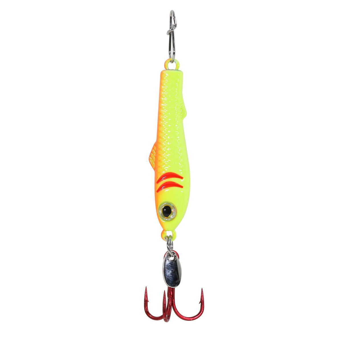 The Pinhead Mino has been a staple in many ice anglers tackle boxes for many years. The Next generation of the Pinhead is here, the Pinhead Pro! The perfect injured minnow profile that dances in place when jigged and its classic sleek spoon design gets down to the school fast. Now made of environmentally friendly Zinc Alloy that provides a unique flash, sound, and vibration in the water.