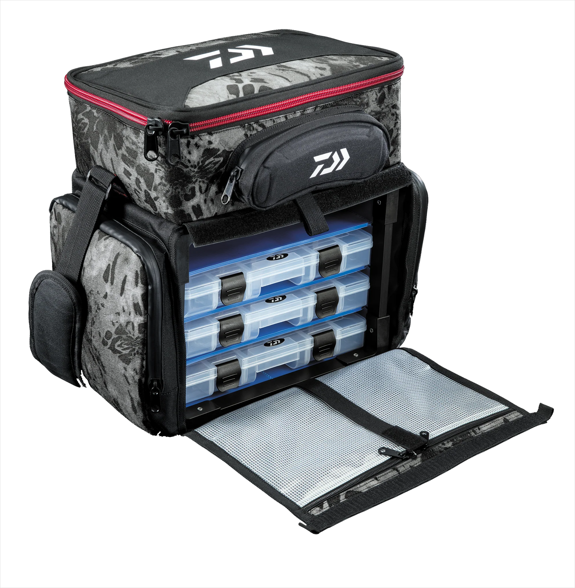 Provides you with sectional top storage for line and terminal tackle. Three Daiwa 3600 boxes with slide-out patented dividers give you easy access to all your lures and gear.