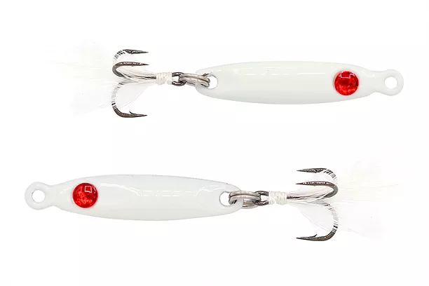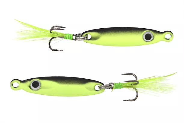 The Eurotackle T-Flasher tungsten jigging spoon is the one bait we all need! This game changer hard bait features a 99% Tungsten body, a custom Eurotackle treble hook with hand tied feathers, with high quality Glow and UV colors available. Targeting Panfish, Walleye, Trout, Perch, Bass, Bluegill and Crappie with ice fishing spoon can be super effective. The T-Flasher is a fast sinking spoon due to its Tungsten composition, which is a key factor when it comes to any type of fishing including ice fishing. The way this bait is fished can vary from ripping deep for walleye or slowly jiggled for perch and bass. When it comes to having the high quality fishing gear the Eurotackle T-Flasher Tungsten spoon is must!