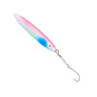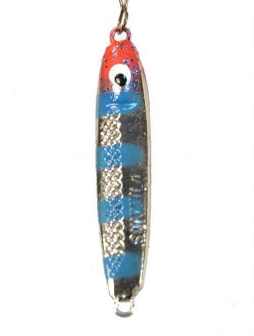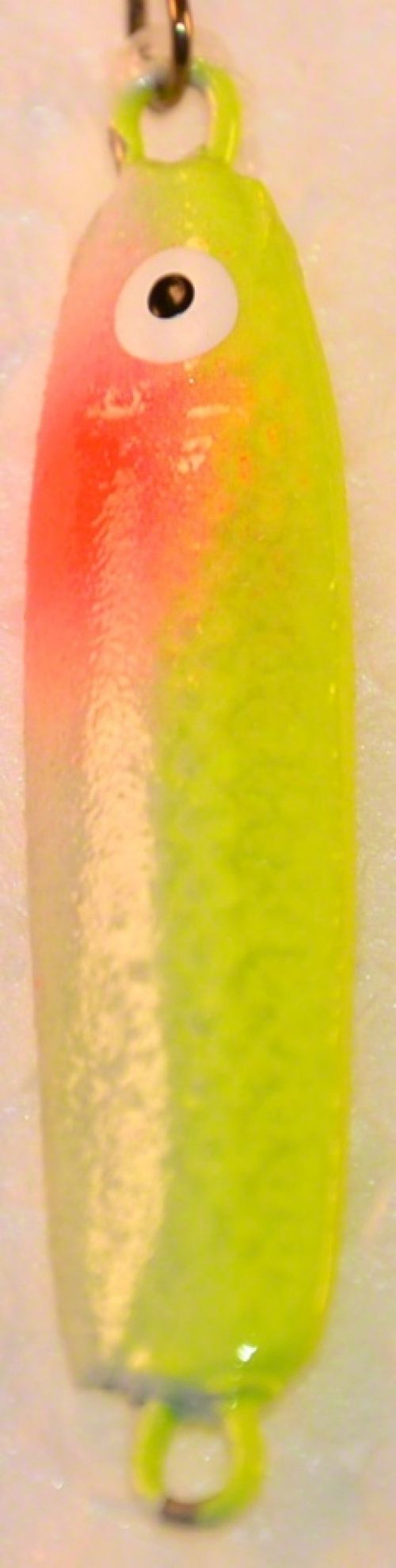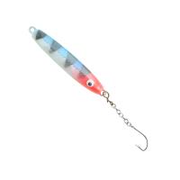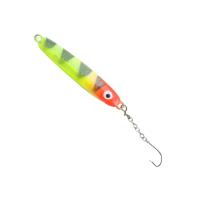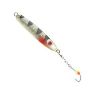 Hali Sukkula Jigs are extremely popular and effective for vertical jigging while ice fishing. These jigs feature a slim minnow body painted with enticing patterns, and a #10 chain hook that can be easily baited with a minnow or worm for added attraction.