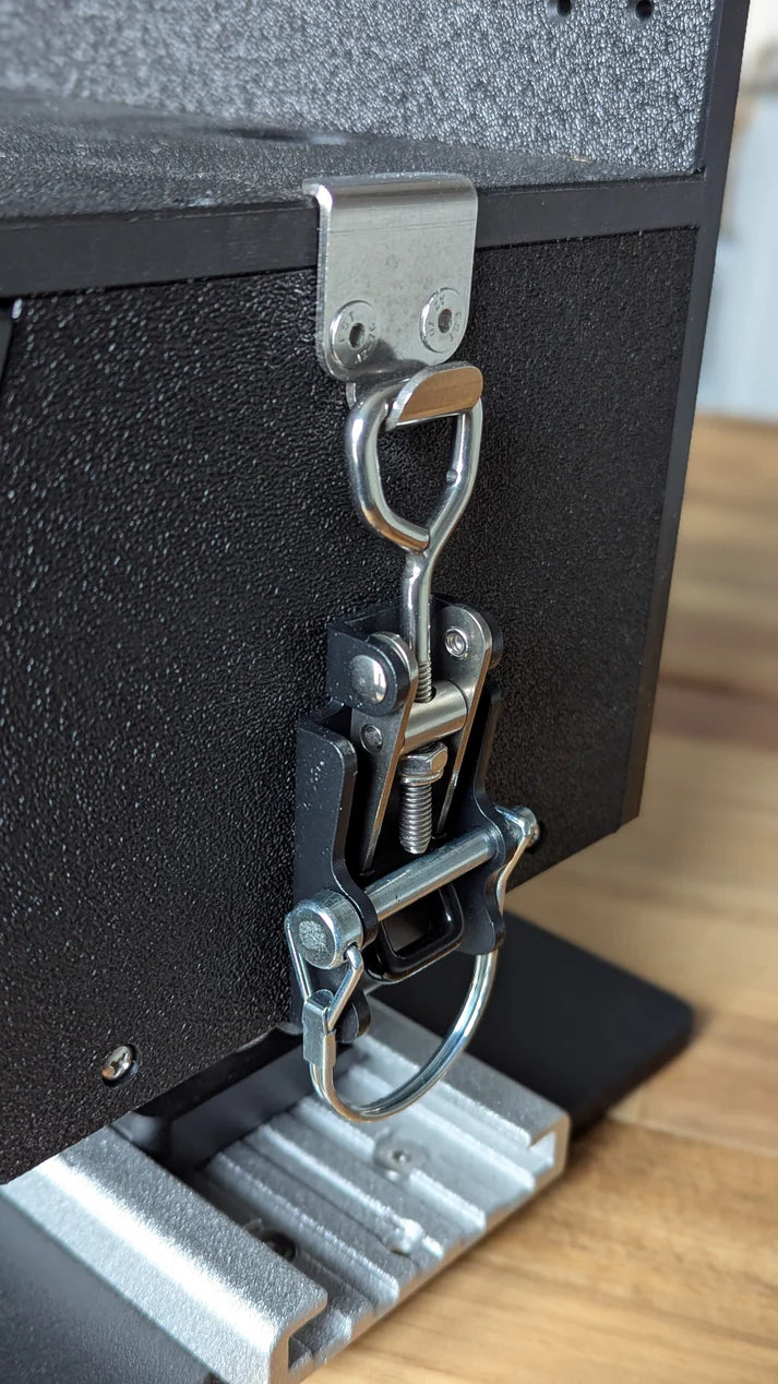 This system is designed to seamlessly mount the HDI Shuttle securely to any surface. Made from 8mm 6061 aluminum plate, proprietary stainless steel 1 piece latches, EVA foam top vibration / thermal pad to isolate the shuttle from the environment and reduce impact to sensitive electronics. The HDI Docking system is fully compatible with out any modification. The HDI shuttle is pre-drilled for simple assembly. Compatible with all 3" standard track systems by Traxtech, Cisco, Titelok, Fingear