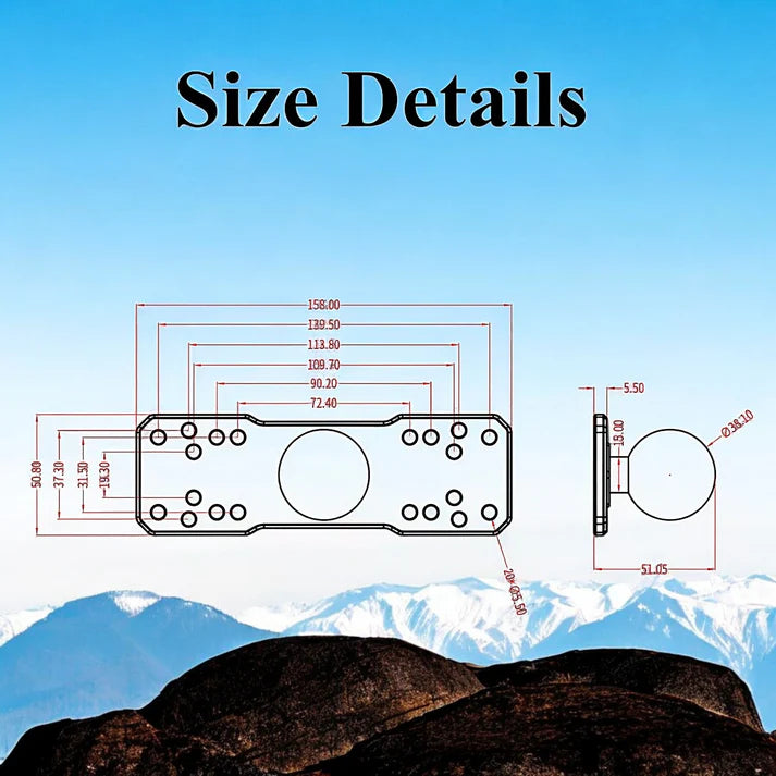 The plate’s TPU over-molded ball head ensures a non-slip, wear-resistant connection, making it perfect for all marine conditions. The 1.5” TPU ball is attached to a sturdy 6.25” x 2” rectangular plate, providing a solid base for mounting your electronics. The plate is designed to accommodate devices with a size of up to 160mm in length, offering a versatile solution for various marine electronics.