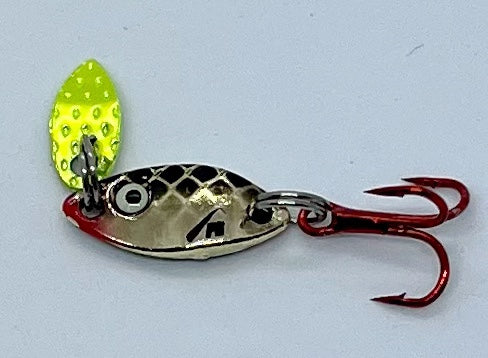 Anglers asked for a smaller PK Predator that would drop fast to help stay on the bite so we did it!! PK Predator TNG (Tungsten) - this smaller version of out best settling product with a smaller gold blade and weighs 1/16 oz made in tungsten for a fast dropping action filled lure. Even finicky fish cant resist this new product. Tip is with a wax worm, small minnow head, or plastic for best results.
