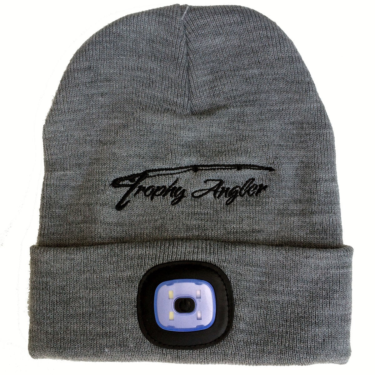 The Trophy Angler 200 Lumen Rechargeable LED Knit Hat, available in black or grey, is the coolest hat on the market right now. This USB Rechargeable LED Hat offers a durable, hands-free lighting solution. 200 lumen rechargeable LED knit hat will shine bright when you need it most. Runs for up to 20 hours on rechargeable 400ma Li-Ion battery. Perfect for ice fishing, hunting, camping, walking to your tree stand, late night filleting, or working in dimly-lit areas. 1-hour recharge time on average. One size fits most.