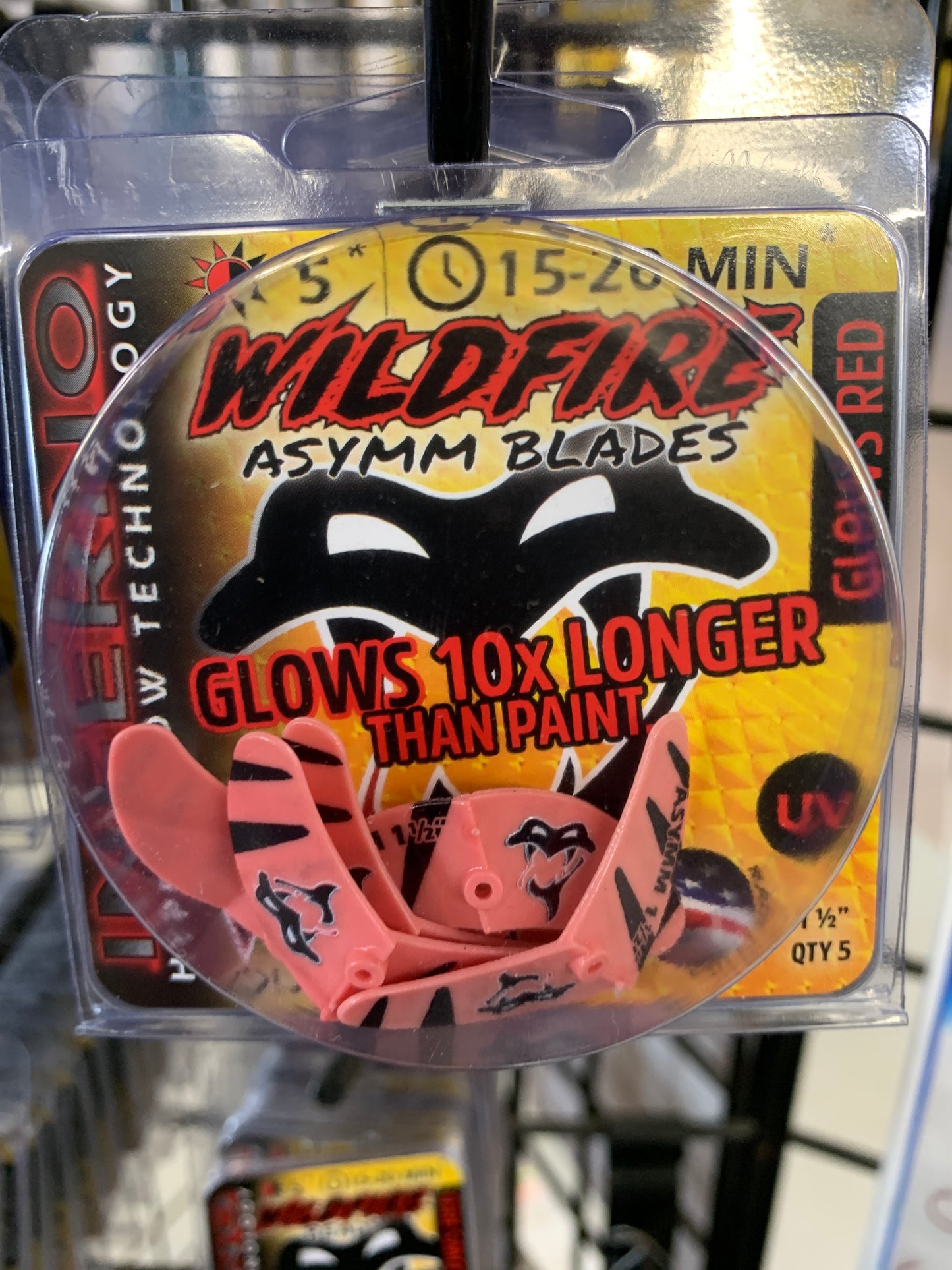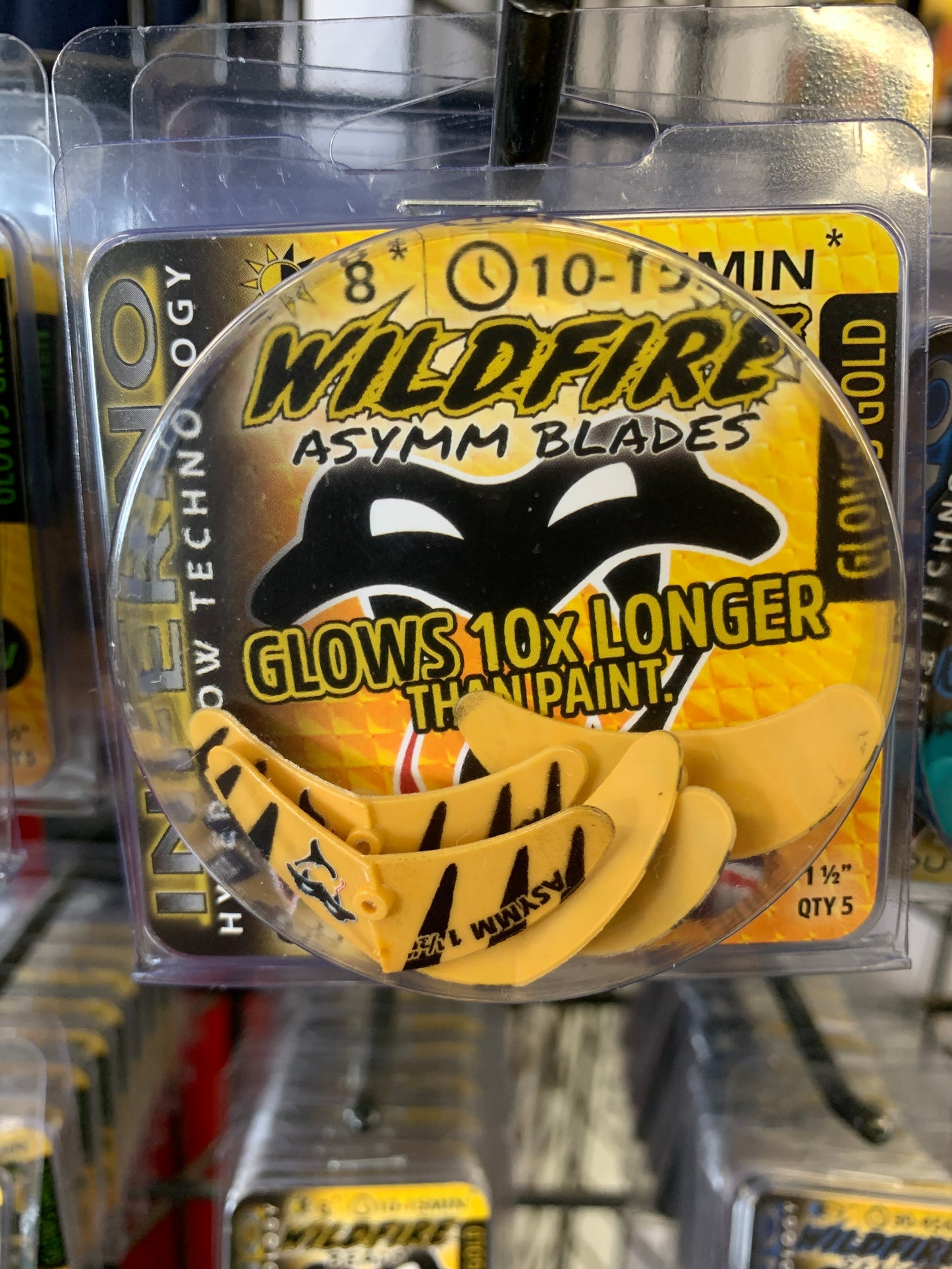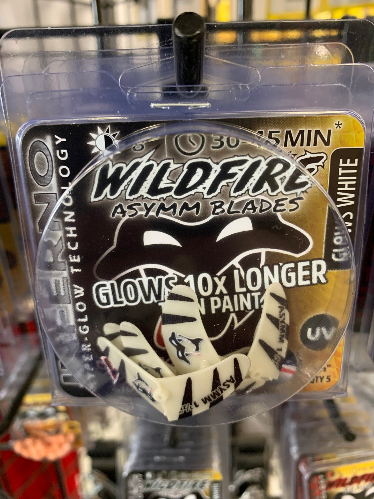 Venom Wildfire Asymm Blades create serious wobble in the water, even at crawl-slow speeds, and can be used to customize any rig. INFERNO Hyper-Glow makes these blades perfect for deep waters, murky waters, and stained waters at anytime, day or night. 5 Pack.
